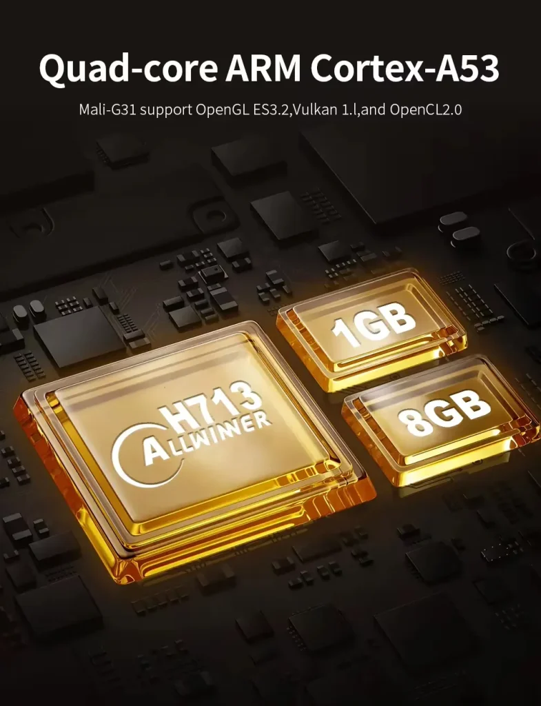 Equipped with 1GB or 8GB RAM options and 8GB ROM for smooth operation and app storage.